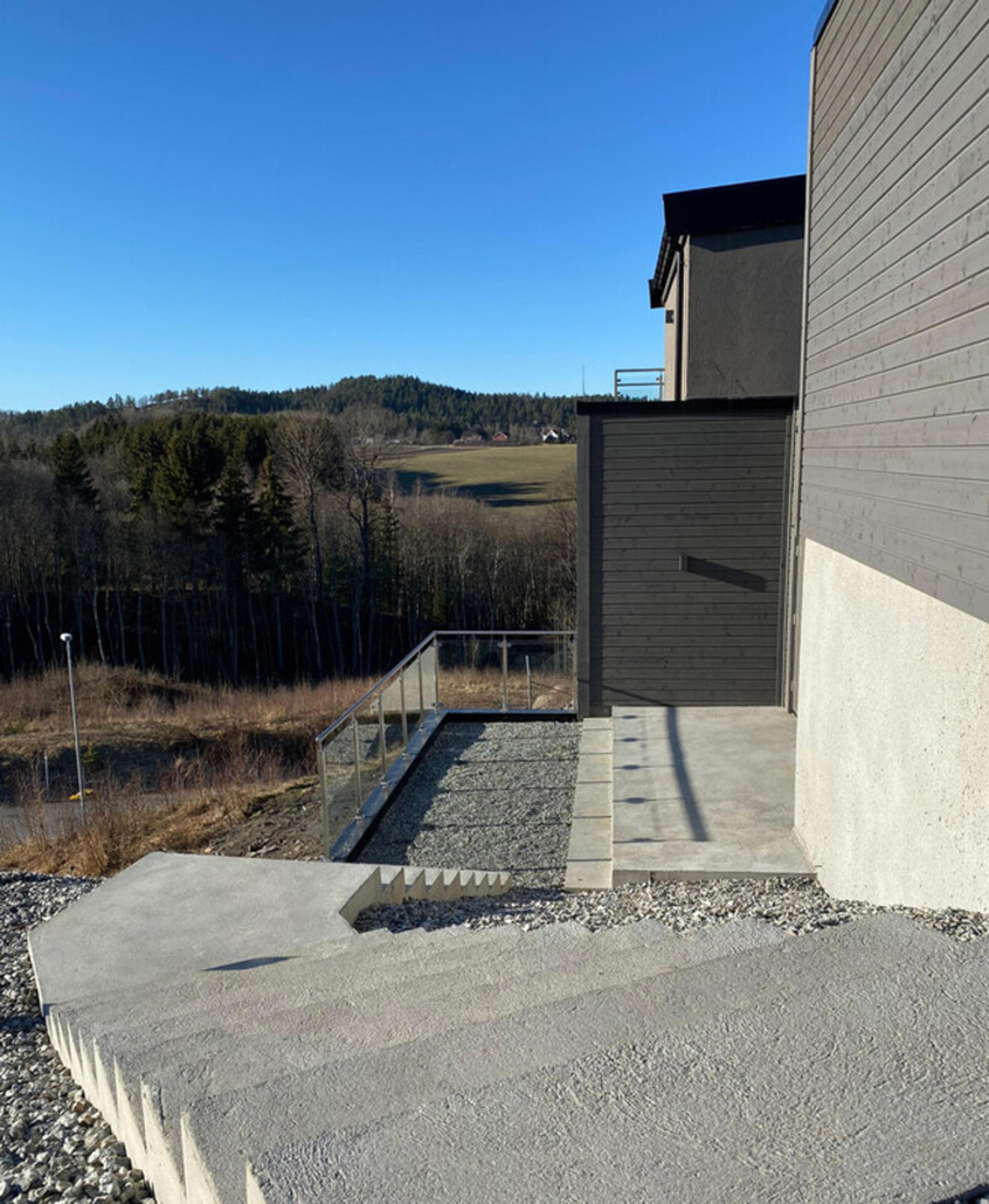 Trude og Eirik Veum sin arkitekttegnede enebolig er i stor grad tilpasset tomten, og fremstår som en eksklusiv og komplett eiendom der både tomt og hus spiller på lag.