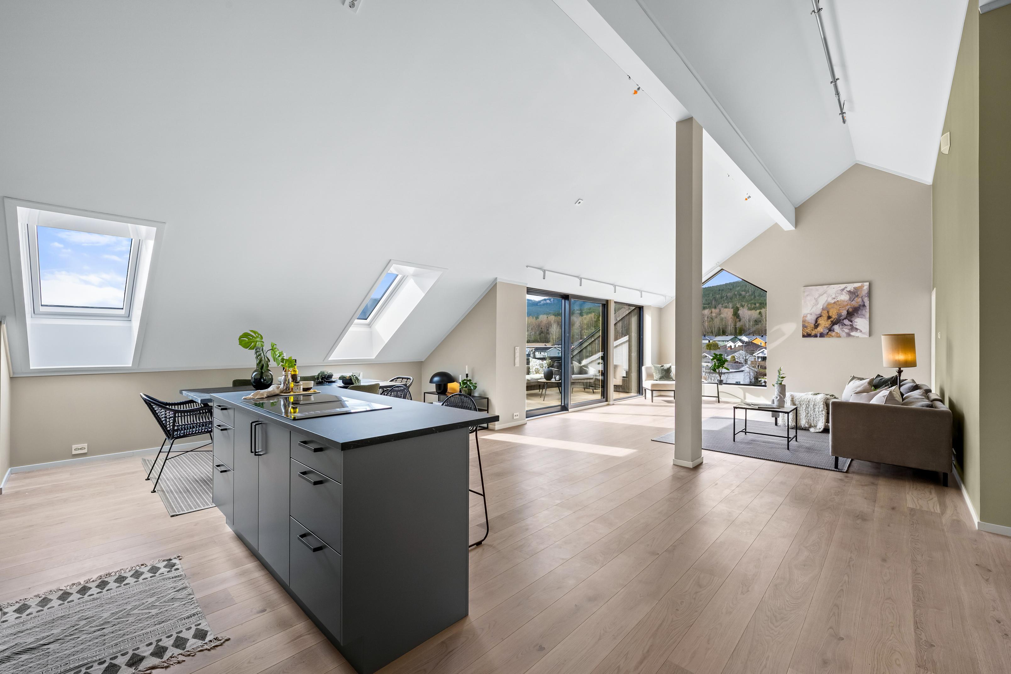 Om du er på utkikk etter en leilighet utenom det vanlige, har du muligheten nå. Låvebygget på gamle Kjøsterud gård i Drammen byr på den utradisjonelle kombinasjonen av låvedimensjoner med stor takhøyde, elegant pakket inn i moderne arkitektur og alle fasiliteter man kan ønske seg av en splitter ny leilighet. Det er kun to leiligheter igjen til salgs.