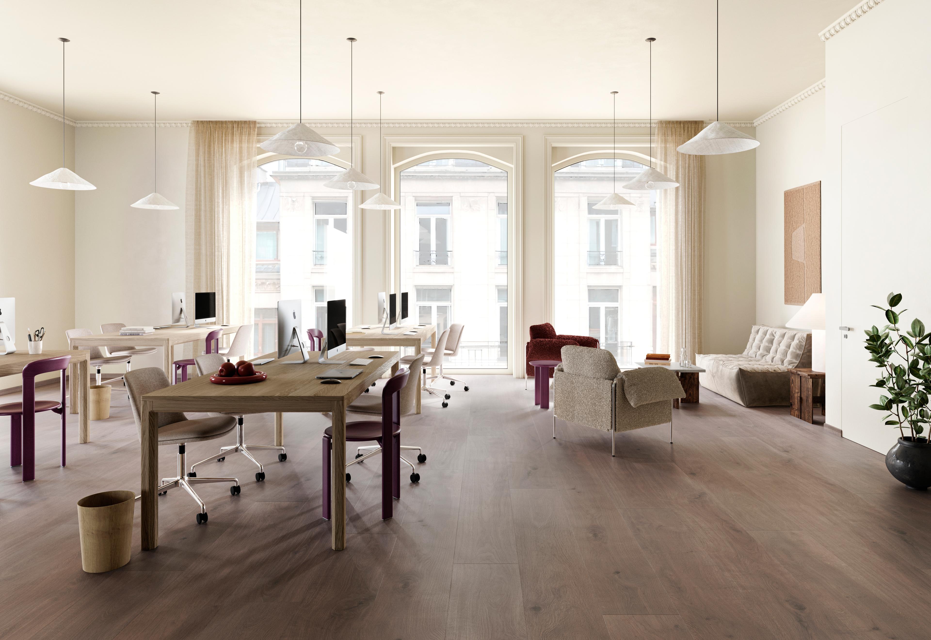 Grand Avenue-kolleksjonen er inspirert av den åpne, luftige følelsen du finner i skandinaviske hjem, der naturlig lys og rene linjer skaper et harmonisk uttrykk. Med ekstra lange planker (241 cm) gir denne kolleksjonen en følelse av romslighet og eksklusivitet.