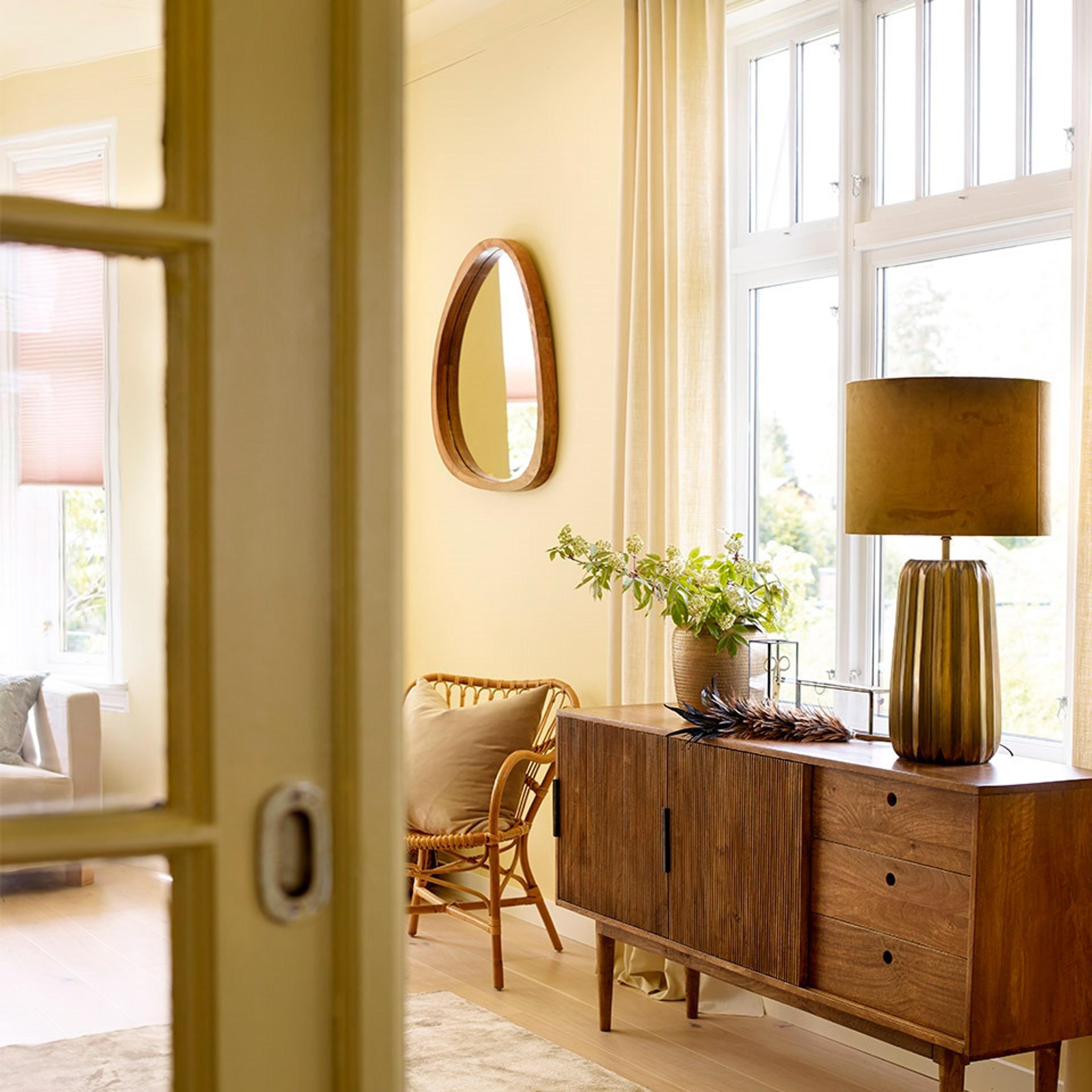 «Sorte dører og vinduskarmer har blitt mye mer vanlig. Det skaper en fin kontrast til veggfargen, uansett hvilken farge du lander på. Det fine er jo at du kan velge ulik farge på hver side av døren. Dette gjør det lettere å tilpasse fargene for det enkelte rom. Vi ser også at stadig flere velger Klassisk hvit på lister og karmer, mens farger som Bomull og Eggehvit fases mer ut.»