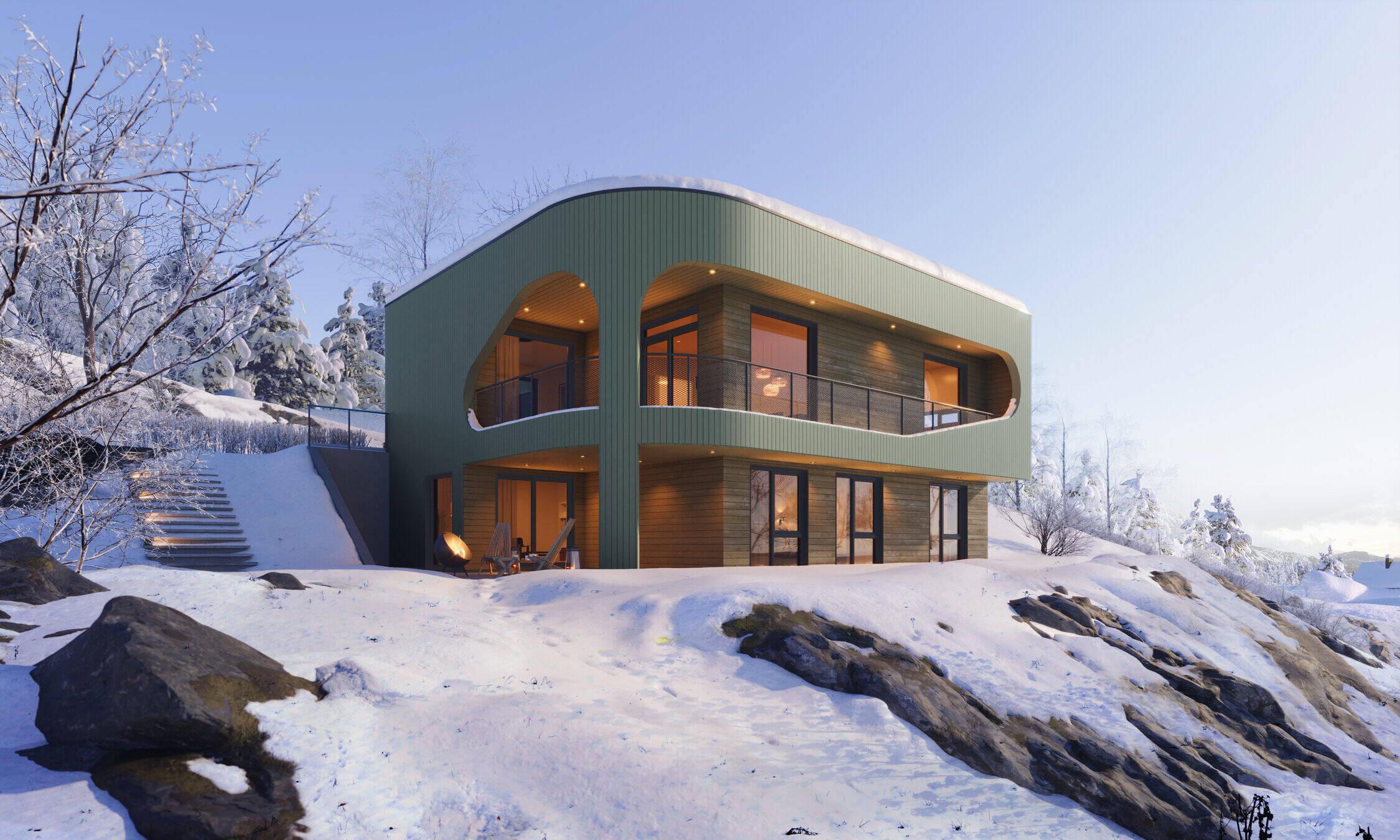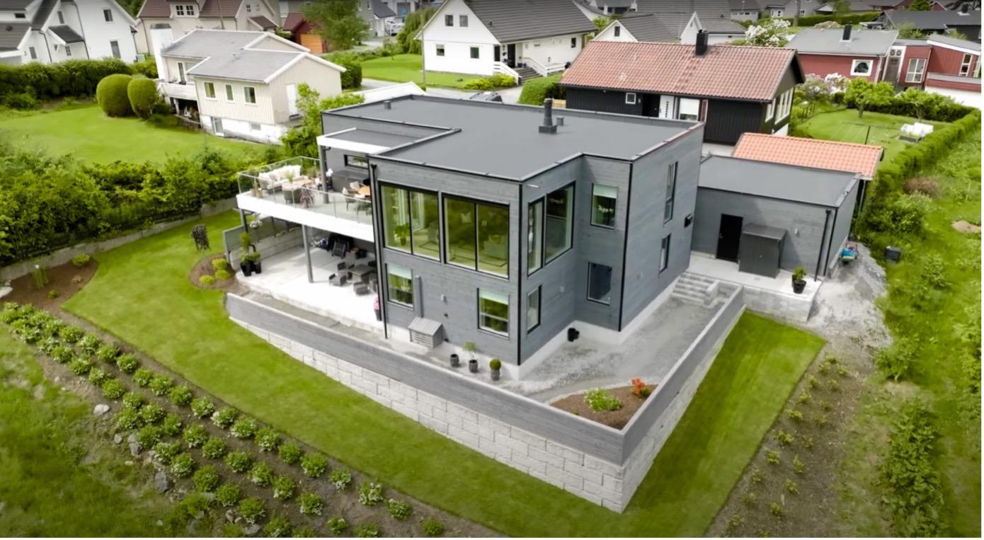Selv om våre kataloghus i utgangspunktet er tilpasset flat tomt, kan alle våre hus tilpasses skrå tomt. Vår nyeste funkismodell, Etne, er spesielt designet for skrå tomter, og gir en enestående harmoni mellom etasjene.