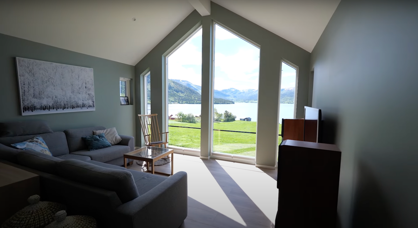 Tomten og utsikten er helt enestående, og huset er derfor bygd for å ivareta mest mulig av utsikten mot både hav og fjell. Siv Tone forteller at de store vinduene gjør at man får kjent på å være i kontakt med naturen, selv om man er inne i huset.