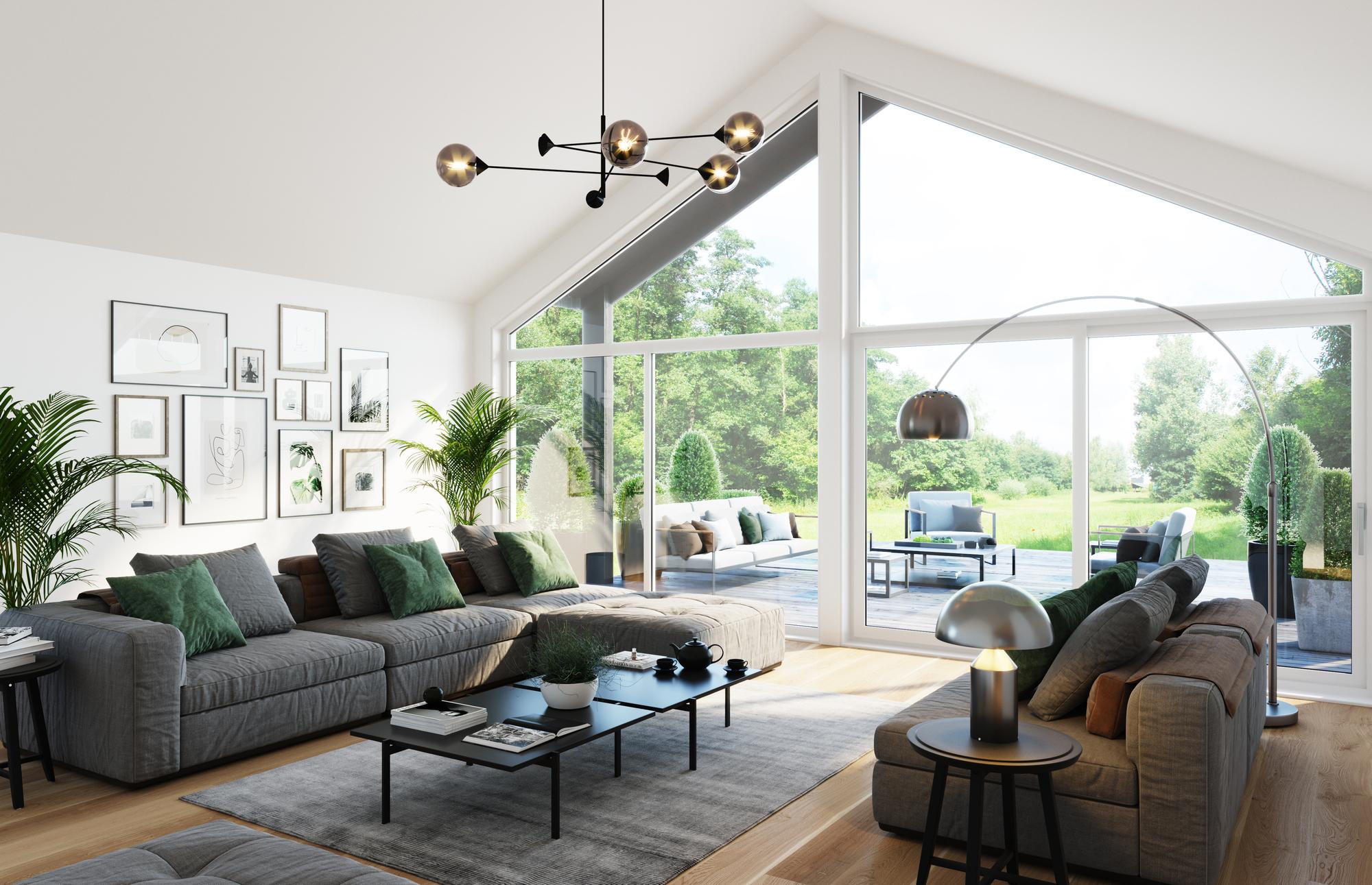 Ferdighusene våre kommer med en optimal planløsning for best mulig arealutnyttelse. Her vist i det moderne atriumhuset Sandefjord.