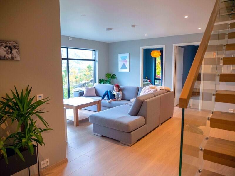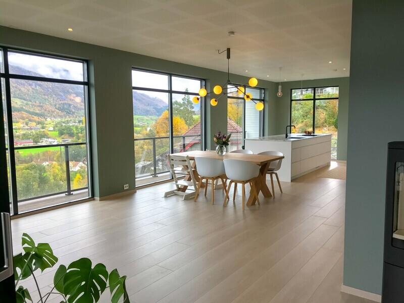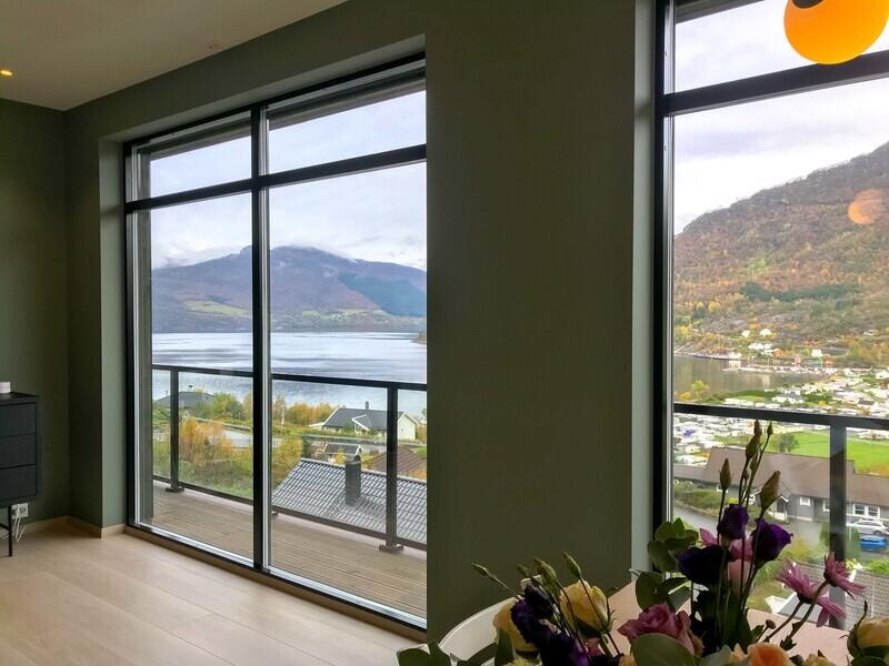 Utsikten fra stuen er enestående i eneboligen Fredrikstad som står i Vikedal.