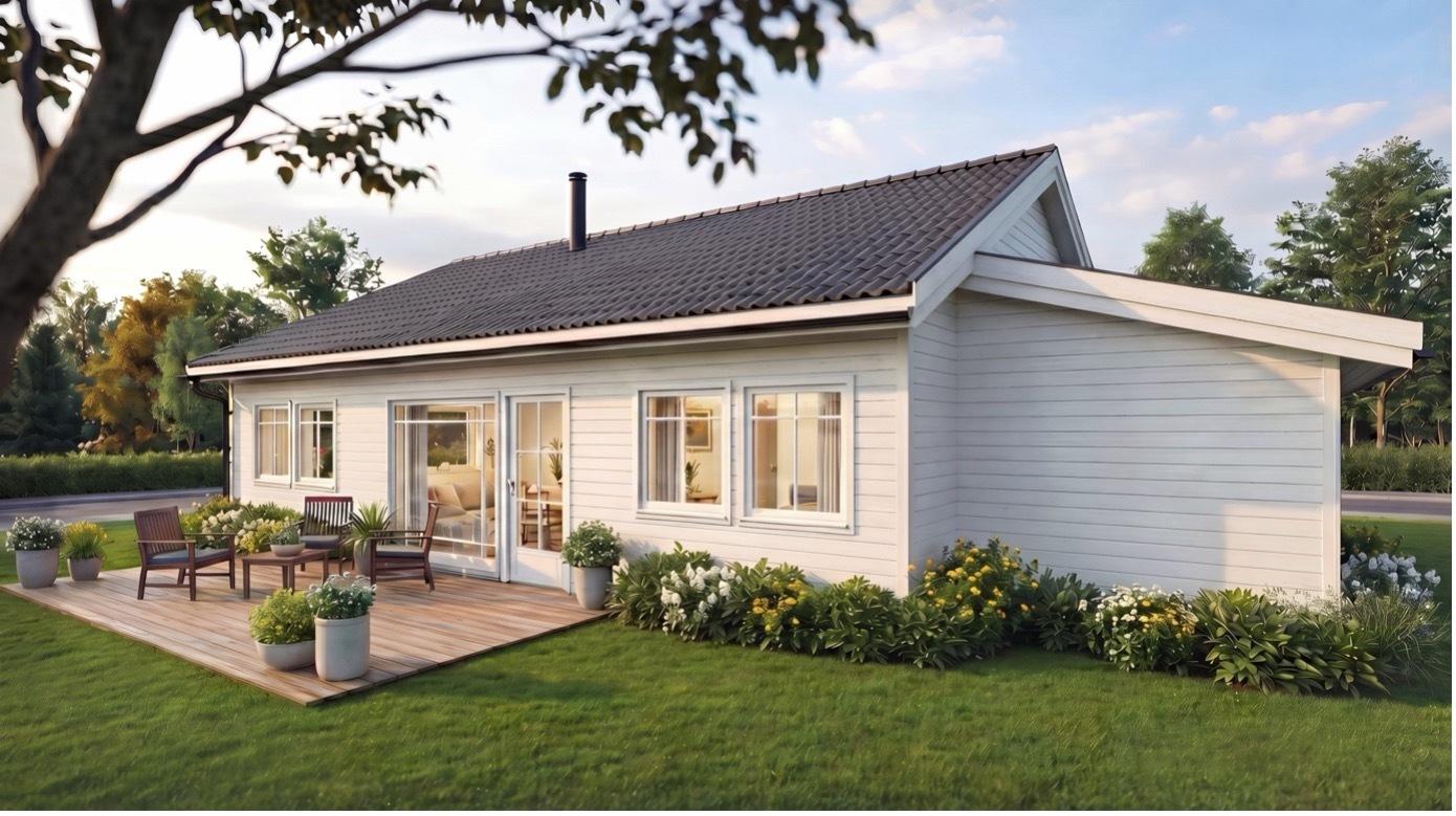 Jessheim er et hus som er laget for å vokse sammen med livet ditt. En kompakt og gjennomtenkt bolig som gir en trygg start, men som også åpner for mer når behovene endrer seg. Huset fungerer fint som det er, med en smart planløsning som gir tre soverom, to bad og gode oppholdsrom på et lite areal. Samtidig er det lagt inn fleksibilitet, slik at du enkelt kan utvide med ekstra plass – enten det er mer stue, et ekstra rom, en carport eller en løsning som passer akkurat din hverdag. Huset kan også speilvendes og brukes som tomannsbolig.