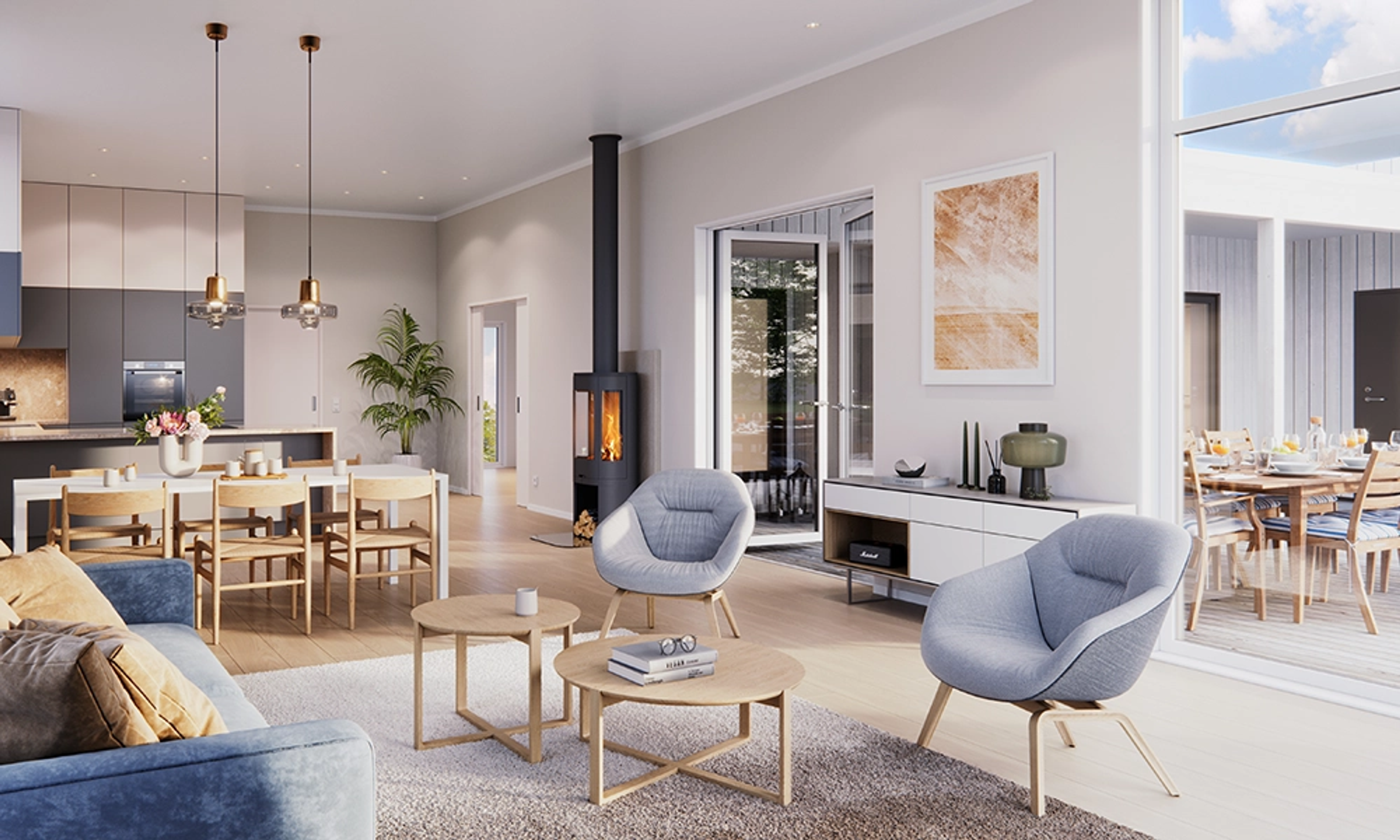 Når vi utvikler nye husmodeller legger vi stor vekt på hvordan folk faktisk bruker hjemmet sitt. Ofte betyr det åpne, men strukturerte soner. Kjøkken og stue som fungerer godt sammen. Smarte løsninger for oppbevaring, og rom som kan endre funksjon i takt med behovene som oppstår.