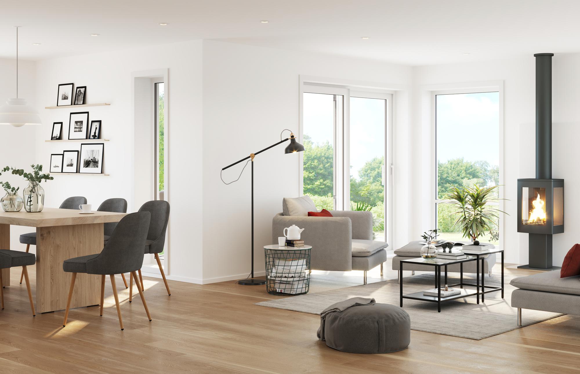 – I andre etasje ligger det opprinnelig en ekstra stue, som jo for mange er veldig nyttig med tanke på ekstra lekerom for små barn, eller ekstra TV-stue til tenåringene. Men noen føler kanskje at de store, flotte skråvinduene går litt til spille med denne planløsningen. Derfor tegner vi ofte om romdelingen, slik at stua og kjøkkenet blir passert i andre etasje i stedet. Personlig syns jeg dette utgjør ganske mye for boligen, forteller Gunn.