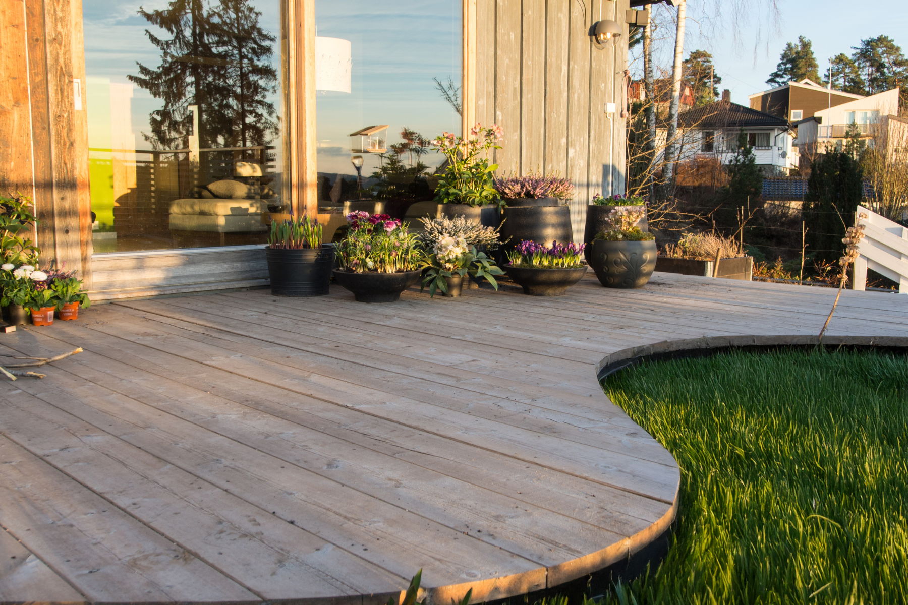 I tillegg til det praktiske, følger denne typen terrassebord også tidens trender. Vi ser nå en økende interesse for organiske former, mykere linjer og terrasser som følger terrenget naturlig – og Cu-impregnert furu er perfekt til slike prosjekter.