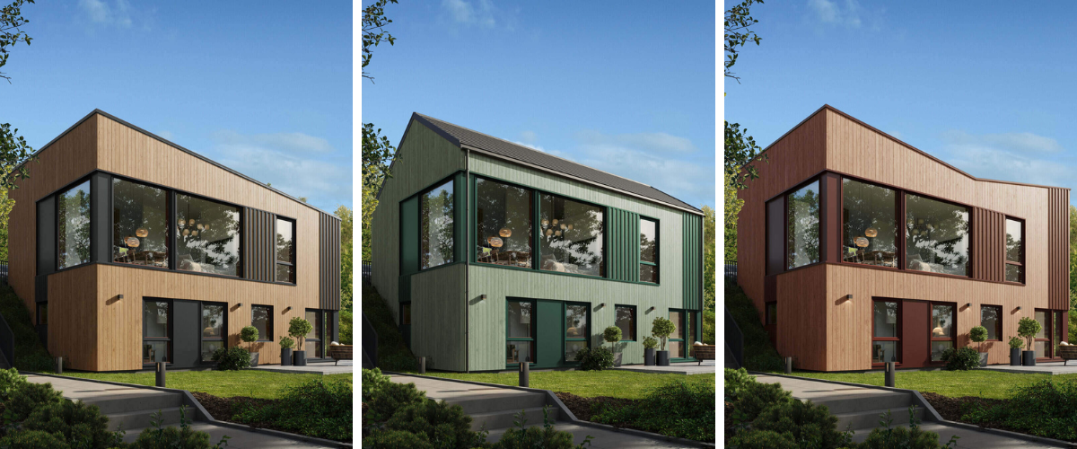 Farger er en viktig del av boligdesignet, og de tre fargekonseptene som er utviklet, er inspirert av naturens palett. Rødbrun henter inspirasjon fra terrakotta og leire, grønn fra naturens blader, og naturlig beis etterligner treverk, med karmfarger som gjenspeiler stein og fjell.