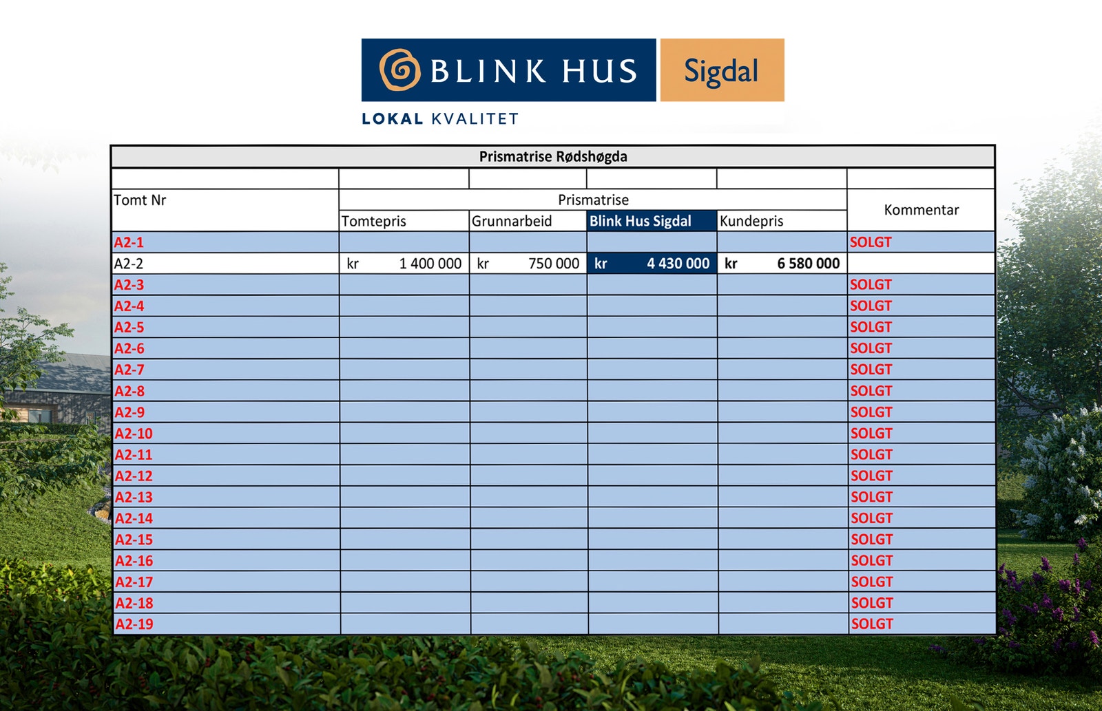 Velkommen til Blink Hus Sigdal – din lokale boligbygger med solid erfaring og ekte håndverkskvalitet! Enten du har en tomt og drømmer om å bygge nytt, ser etter den perfekte tomten, eller ønsker et nøkkelferdig prosjekt, er vi her for å gjøre boligdrømmen din til virkelighet. Med over 40 års erfaring og en sterk lokal forankring hjelper vi deg gjennom hele prosessen – fra idé til ferdig hjem. Vi er "Lokal Kvalitet"!