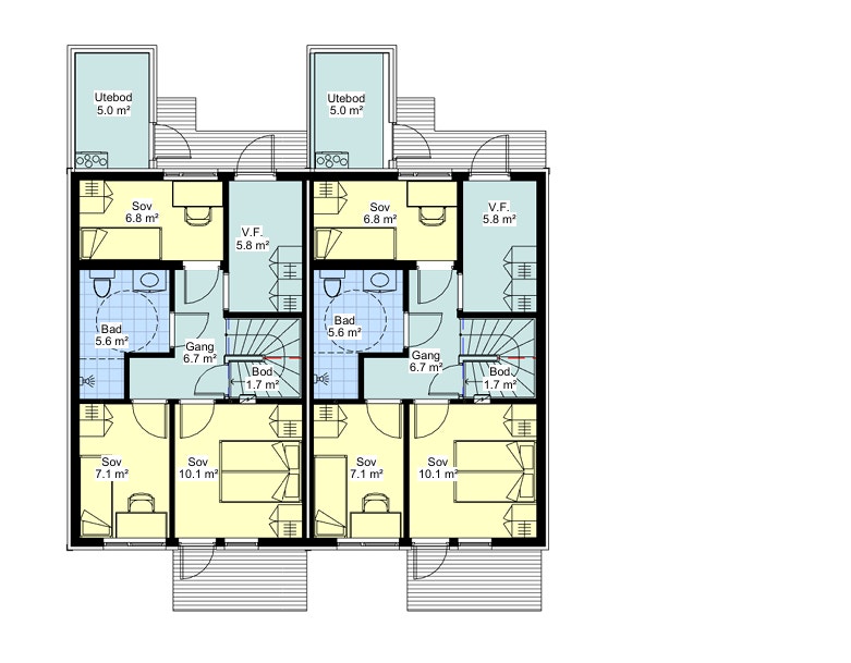 Boligen Inneholder, Sportsbod, flislagt Vind fang, 3/4 Soverom, 2 bad der det ene badet også fungerer som vaskerom. Innvendig bod under trappen. Utgang til platting i 1.etg og en balkong i 2. etasje!