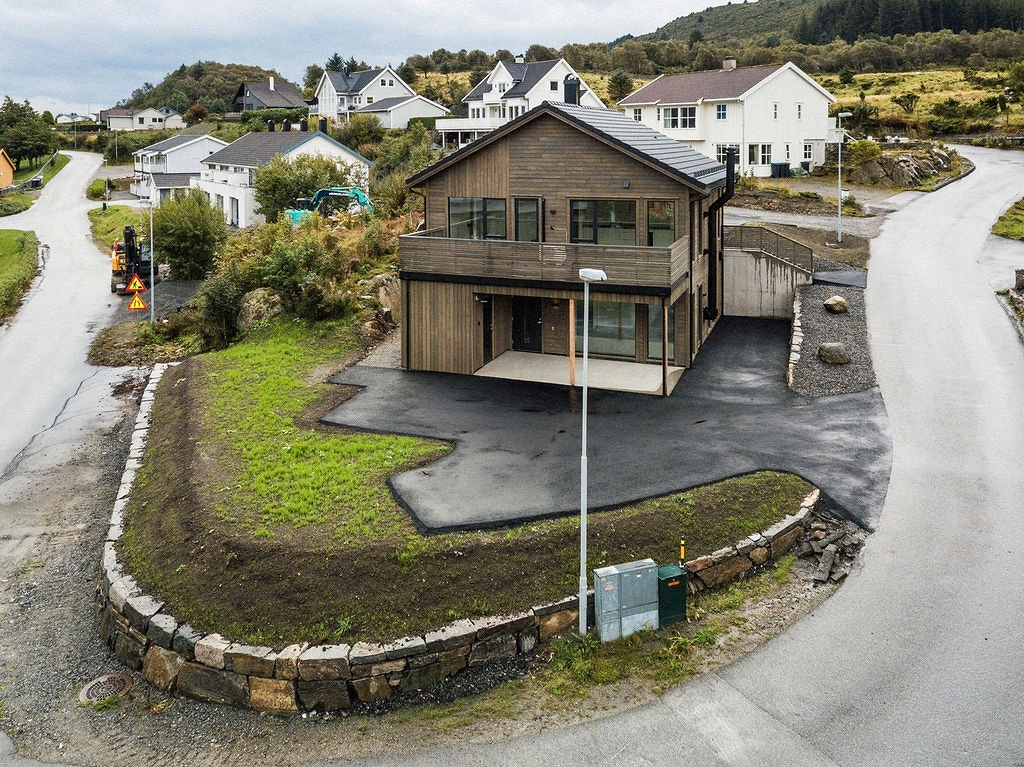 - Alt ferdig ute – natursteinsmur, asfaltert tun og ferdig opparbeidet tomt