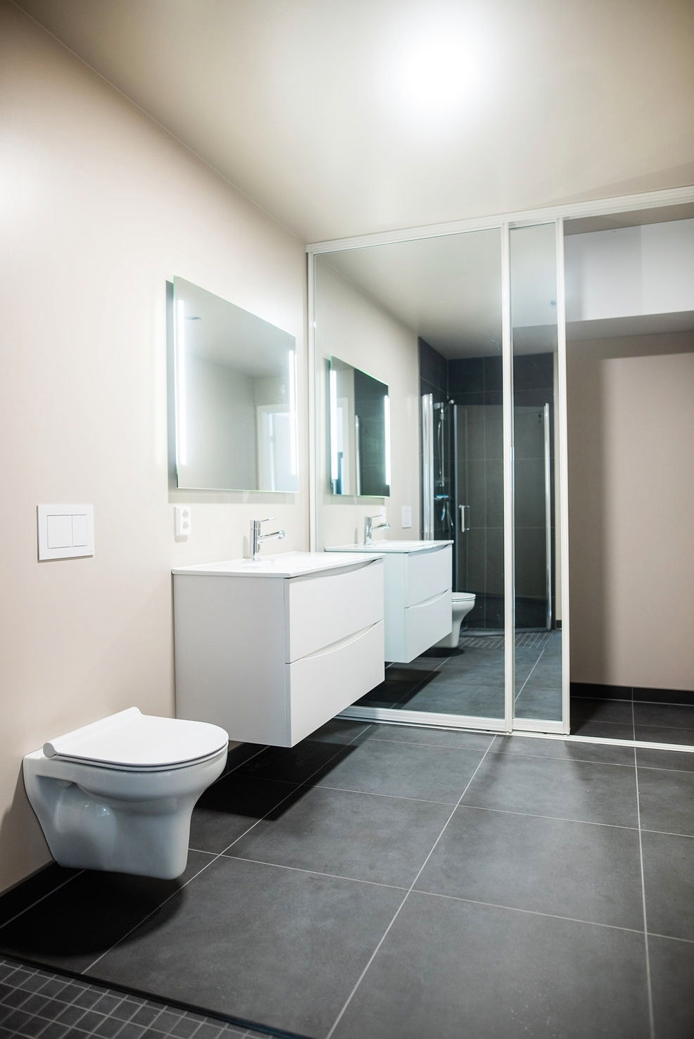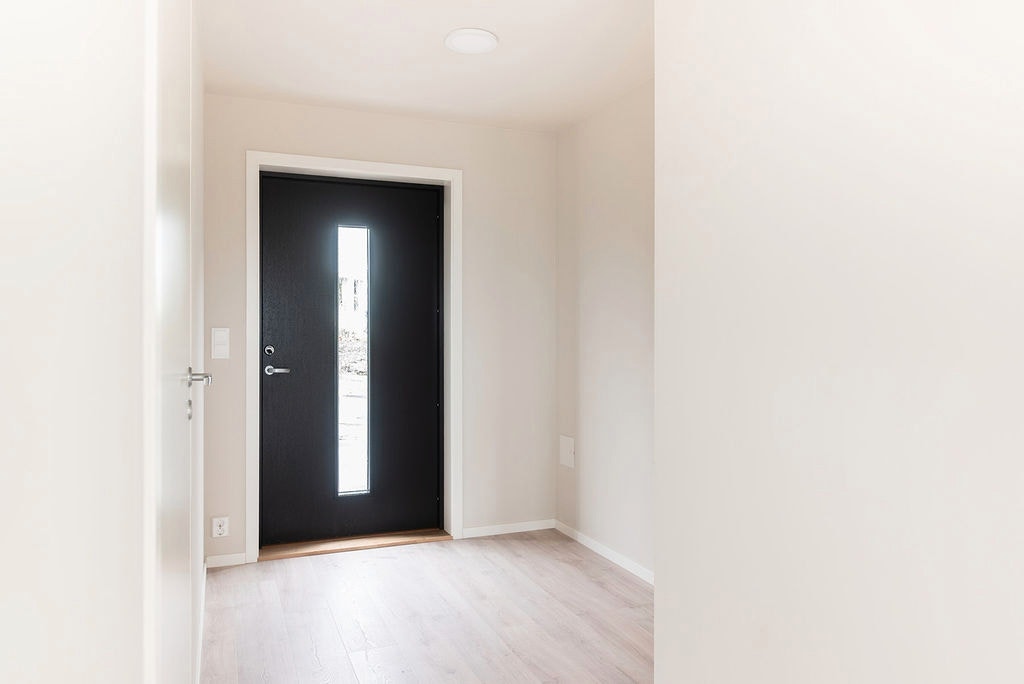 - Listefrie overganger mellom vegg og tak, samt rundt vinduer. Slette hvite lister langs gulv og rundt dører.