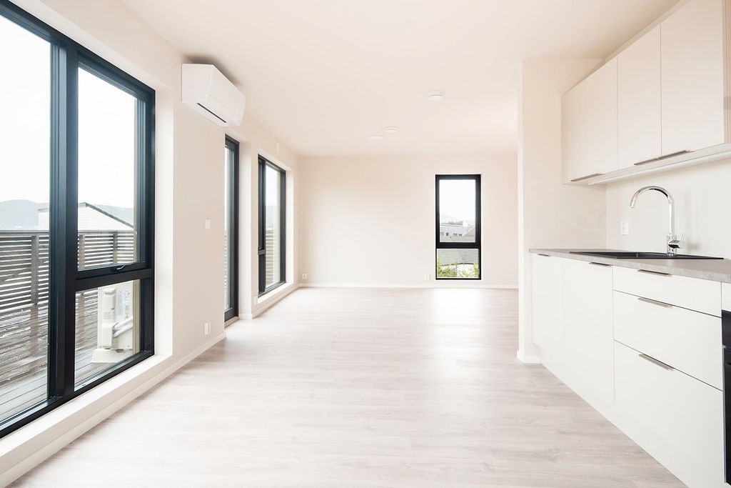- Innvendige overflater leveres med slette vegger og tak, og lyse farger.
