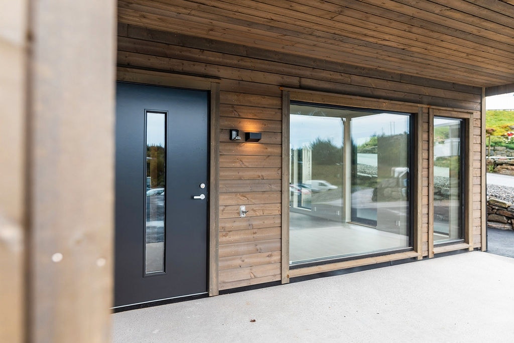 - Vinduer og ytterdører er i dempet svart utførelse.