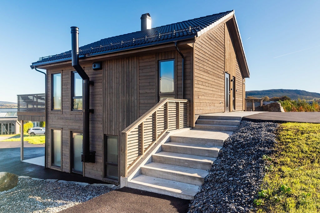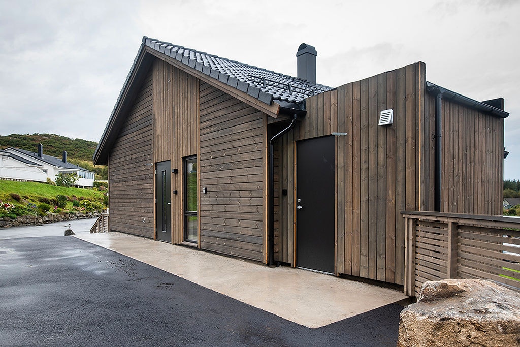 - Utvendig kledning leveres i grå royalkledning som gir et minimalt vedlikehold.