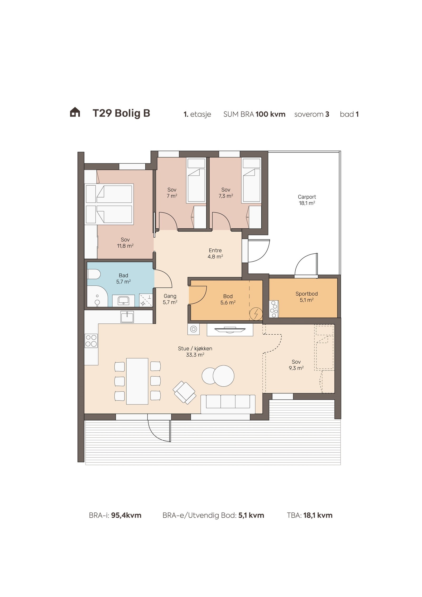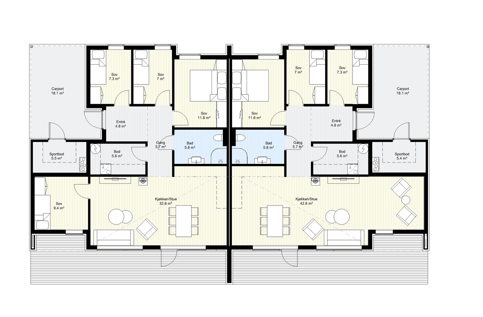 Begge enhetene i denne tomannsboligen er nå SOLGT, men vi planlegger flere tomannsboliger på samme byggefelt i starten på 2026, så kontakt Vegard Berge for mer informasjon.