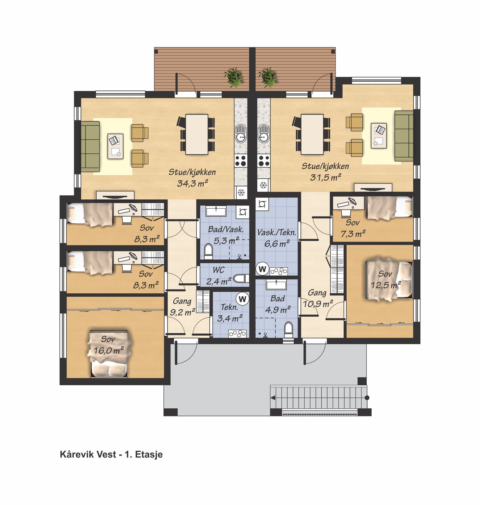 Fleire bustader er allereie seld, og no legg me snart ut ein moderne firemannsbustad! Alle leilegheitene er på eitt plan og har ei gjennomtenkt planløysing med open stove- og kjøkkenløysing, samt utvendig sportsbod med moglegheit for carport.