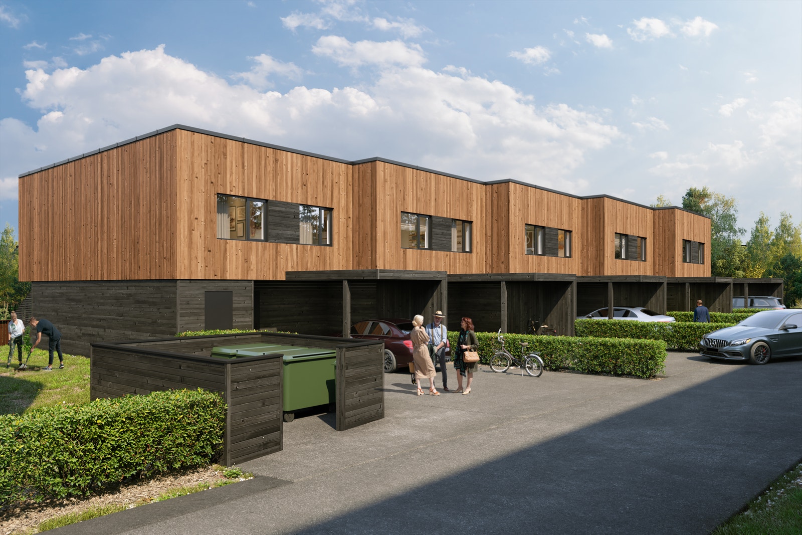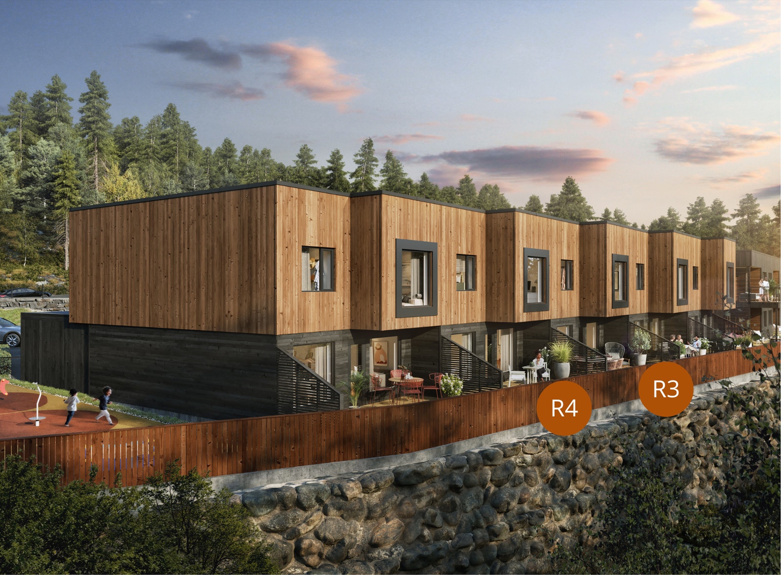 Bustadområdet består av fleire rekkehus og leilegheiter, og me har no flotte bustader til sal i begge kategoriar!