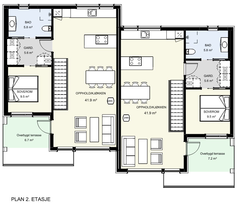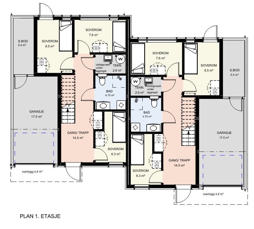 Hver boenhet har egen garasje på 17,5 m2, med sportsbod i bakkant.