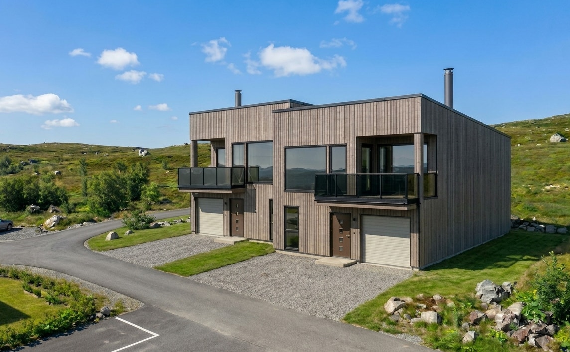 Moderne og innholdsrik tomannsbolig over to etasjer med egen garasje, levert med gjennomgående kvaliteter og moderne materialvalg.