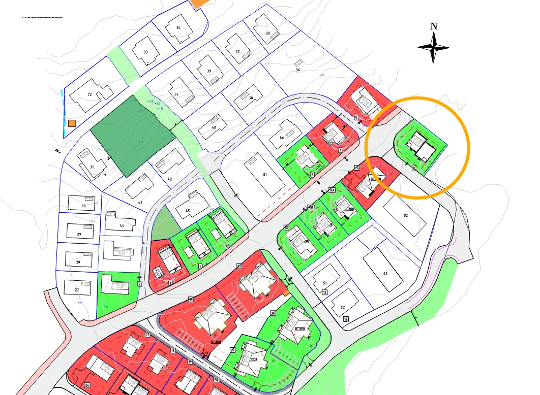 Tomt leveres ferdig opparbeid, men uten topplag av jord og plen. Parkeringsplass leveres med grus som toppdekke.
