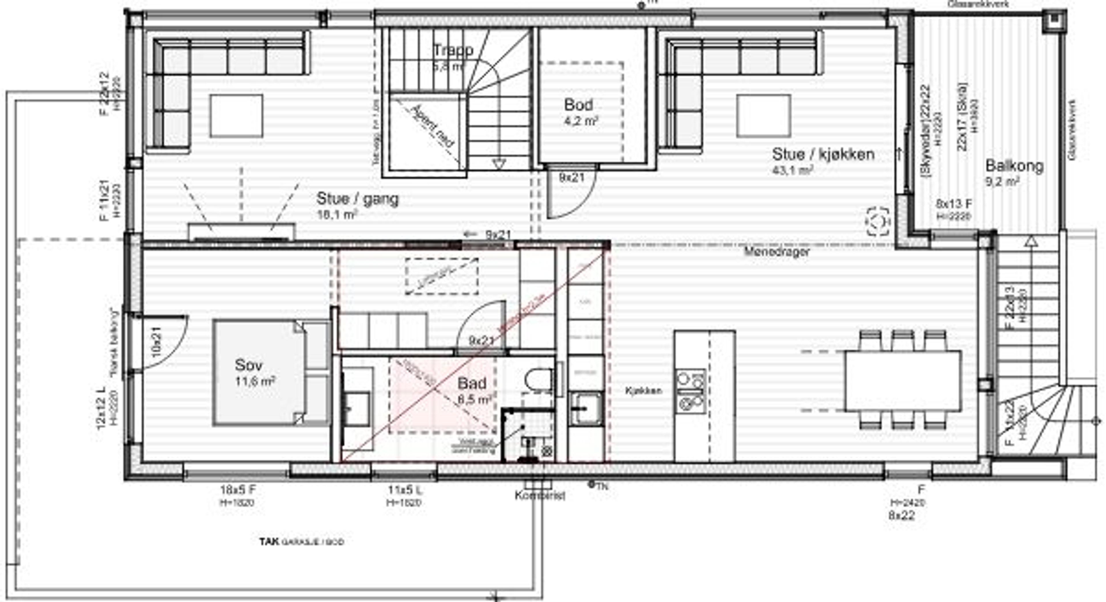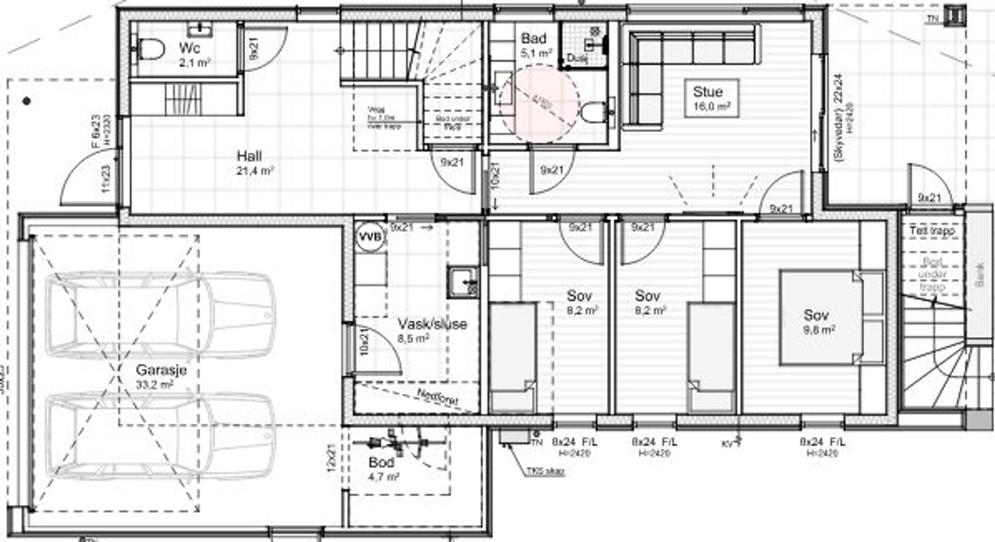223,4 m2 inkl. garasje (190,2 m2 ekskl. garasje).