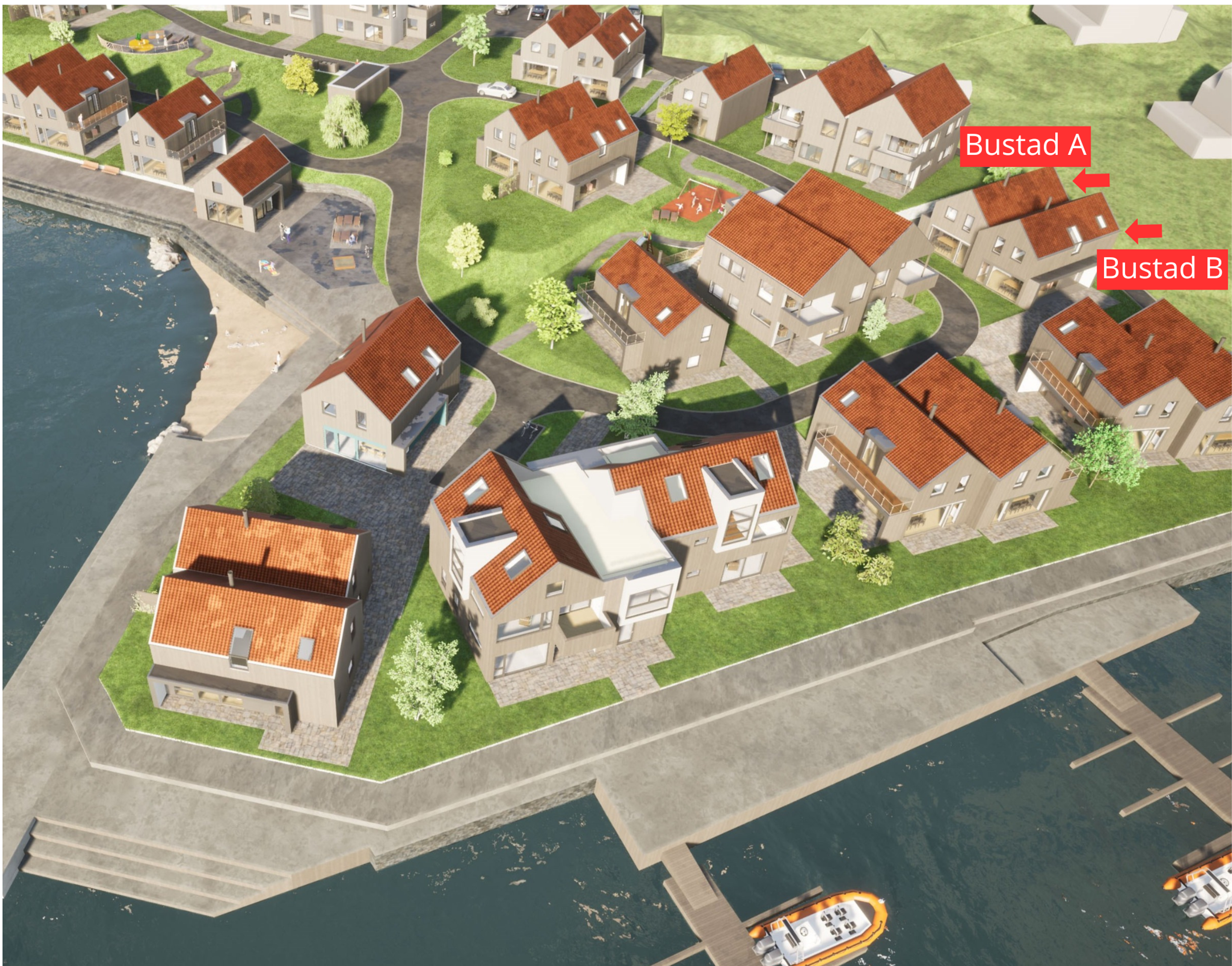 Området har parkeringshus under bakken, universelt utforma uteområde og bustader tilpassa alle livsfasar – med tilgang til både badestrand og kaianlegg for deg som vil utforske den vakre skjærgarden.