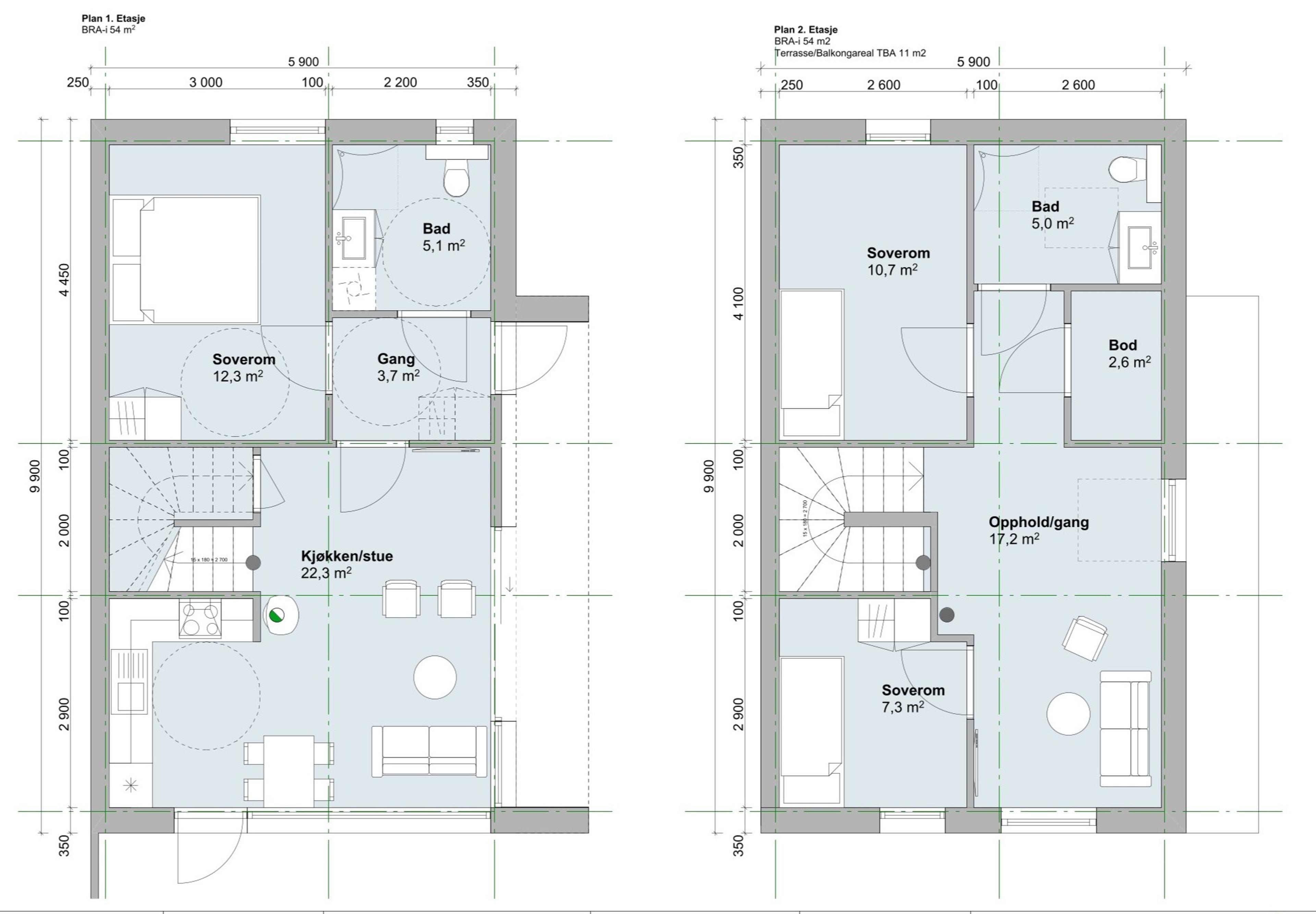 Bustadene går over to plan og har ei funksjonell og gjennomtenkt planløysing med livsløpsstandard. Her får du tre soverom, to bad, open stove- og kjøkkenløysing samt ei triveleg loftstove. Himlinga i 2. etasje gir ei luftig romkjensle, medan store vindaugsflater i stove og kjøkken slepp inn rikeleg med dagslys og gir bustaden eit moderne preg.