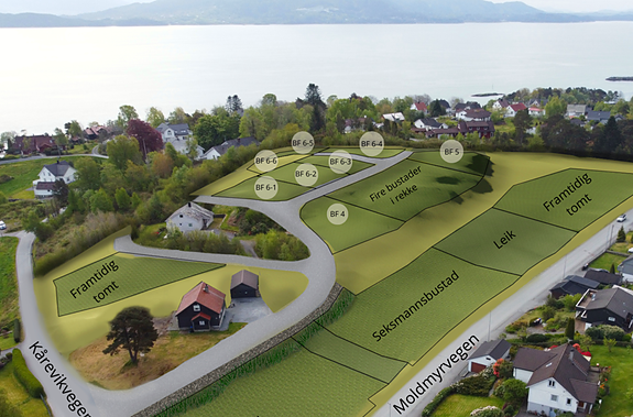 Flotte einebustadtomter i nye Kårevik Vest, levert ferdig planert
